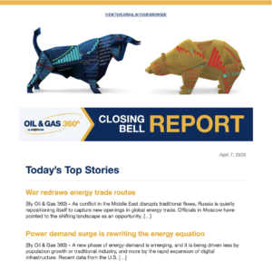 Published daily after market close, Closing Bell reaches the inboxes of a global audience of energy industry professionals, executives and technology experts; institutional, family office and high-net worth investors; portfolio managers and research analysts; investment bankers; and government officials. With over 14,000 subscribers with a ~30% engagement rate, Closing Bell includes daily index and commodity prices and current energy news from Oil & Gas 360®.